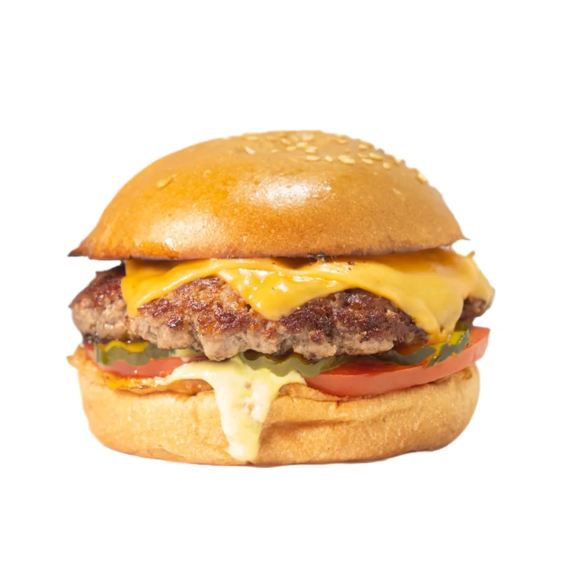 150 Gr. de carne Burguemia, doble queso americano, salsa de la casa y pan de masa madre