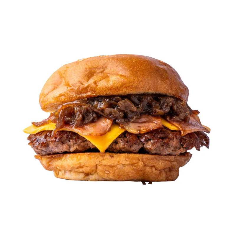 150 Gr. de carne Burguemia, cebolla caramelizada, doble queso americano, tocino ahumado, mayo ajo y pan de masa madre